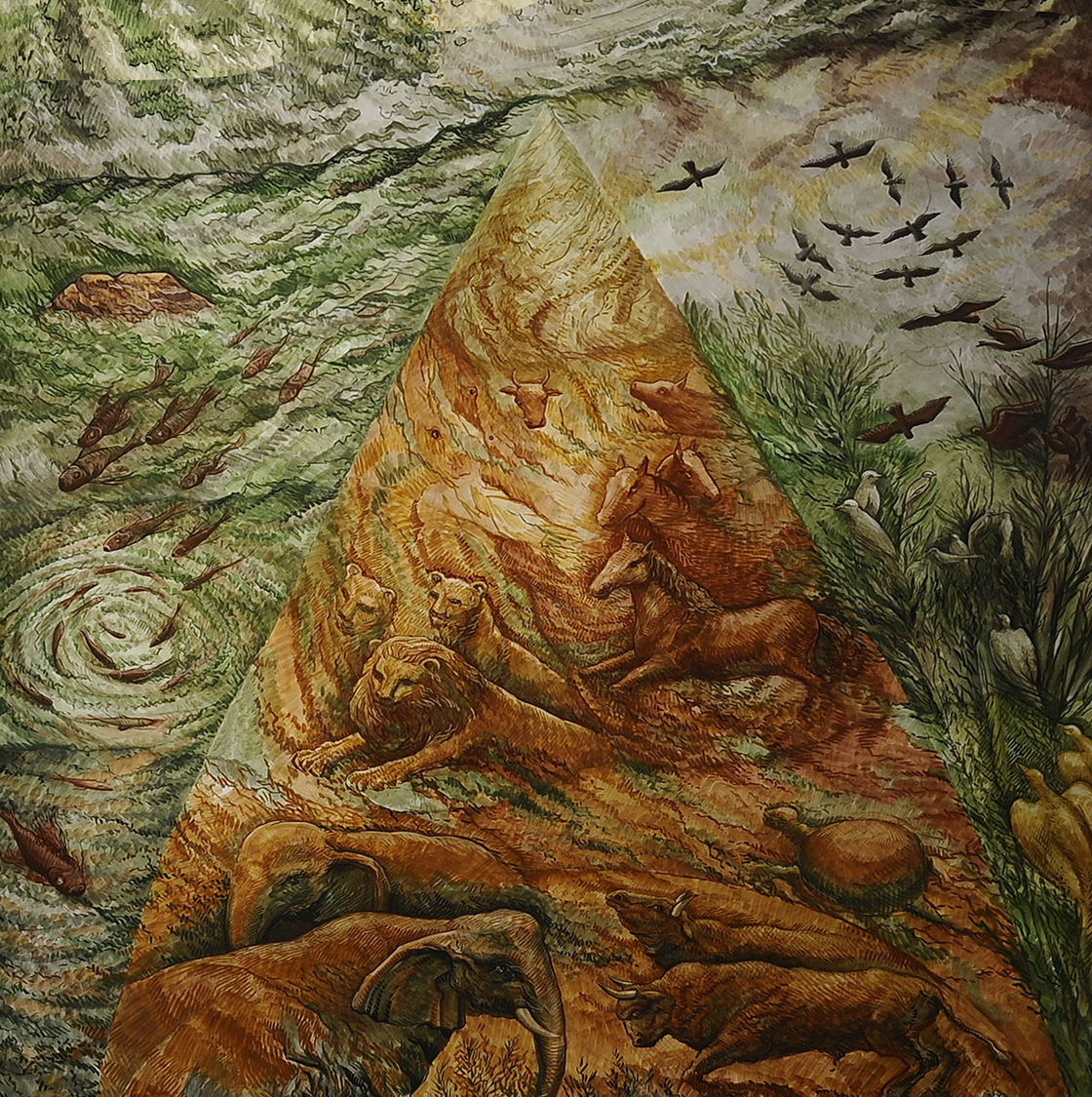 —Que las aguas se llenen de una multitud de seres vivientes y que vuelen pájaros sobre la tierra, por el firmamento del cielo.