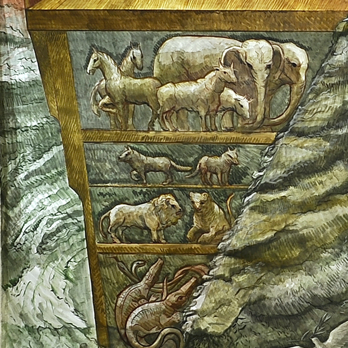 Al subir el agua, el arca se levantó del suelo y comenzó a flotar. El agua seguía subiendo más y más, pero el arca seguía flotando. Tanto subió el agua, que llegó a cubrir las montañas más altas de la tierra; y después de haber cubierto las montañas, subió todavía como siete metros más. Así murió toda la gente que vivía en la tierra, lo mismo que las aves, los animales domésticos y salvajes, y los que se arrastran por el suelo.