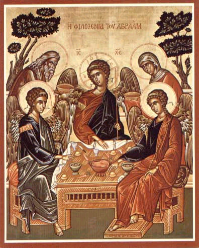 Icono de la Filoxenia: La hospitalidad de Abrahán y Sara Rusia, siglo xv